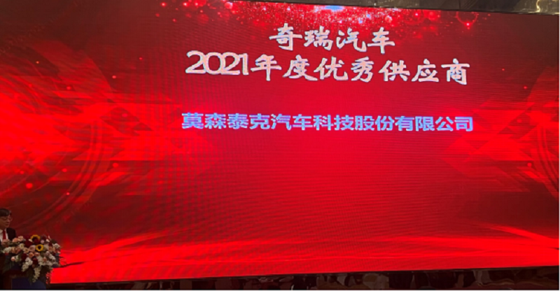 祝賀莫森泰克公司榮獲奇瑞汽車“2021年度優(yōu)秀供應(yīng)商”!